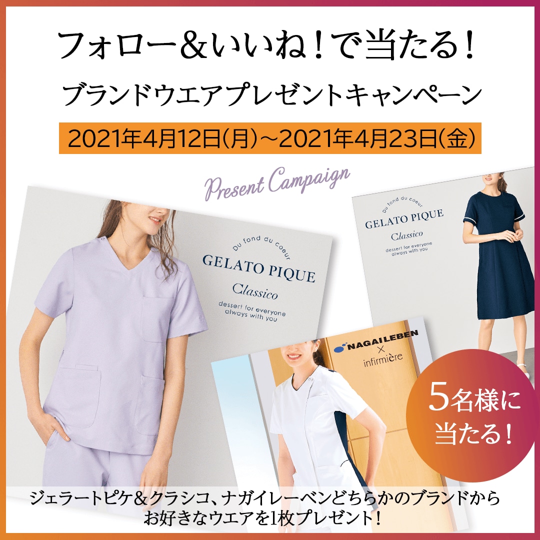 応募いただいた方の中から抽選で5名さまに、「ジェラート ピケ&クラシコ・ナガイレーベンの中からお好きなウエア」をプレゼントいたします。