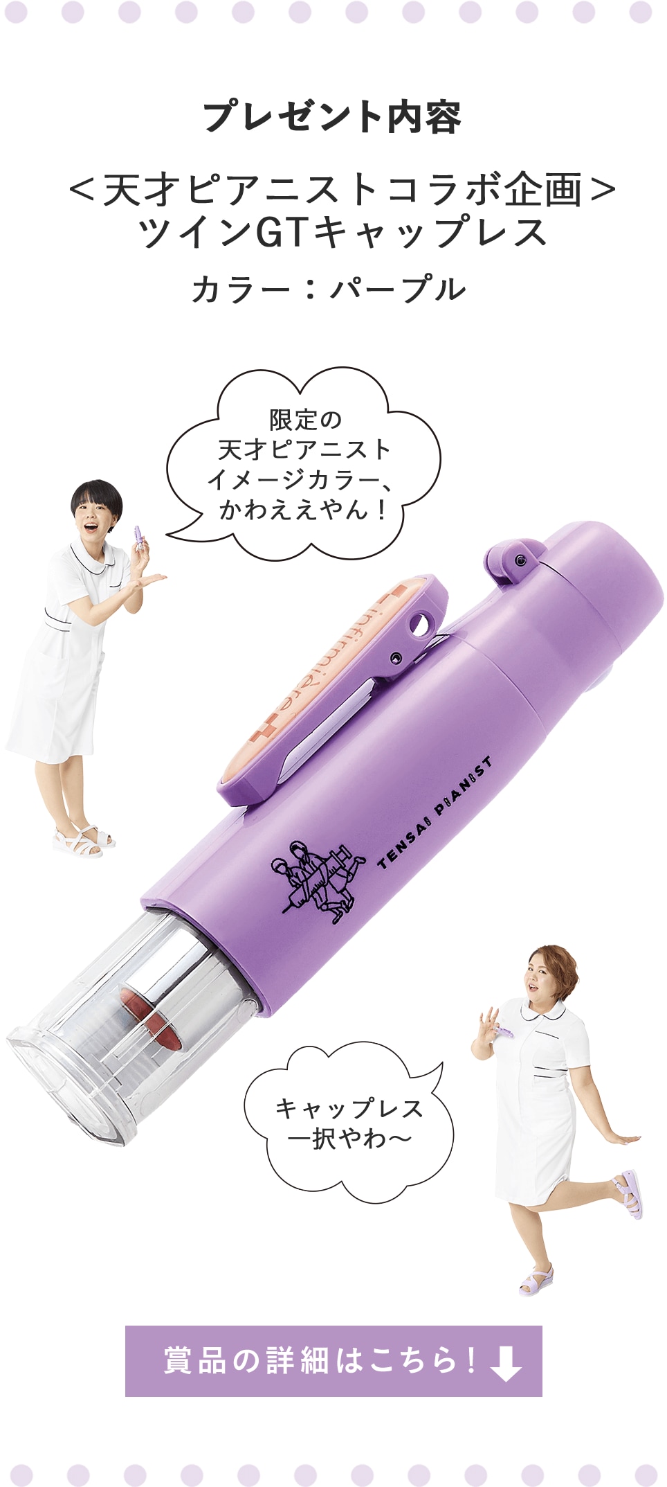 応募いただいた方の中から抽選で10名様に、「<天才ピアニストコラボ企画>ツインGTキャップレス」をプレゼントいたします。