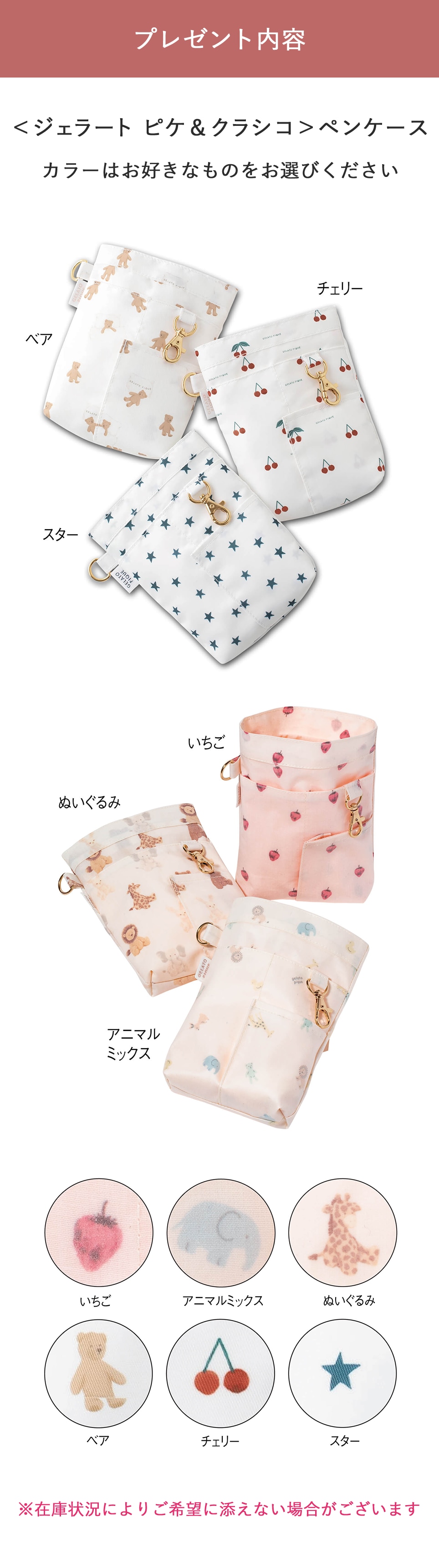 応募いただいた方の中から抽選で10名様に、<ジェラート ピケ&クラシコ>ペンケースをプレゼントいたします。