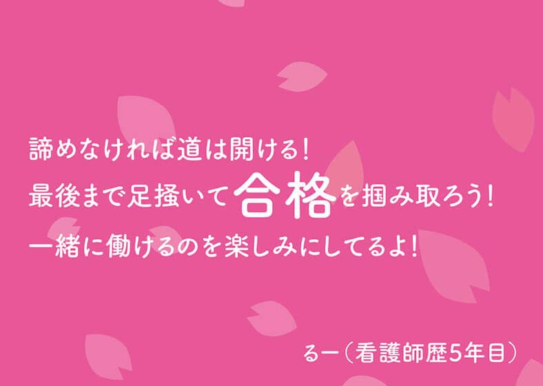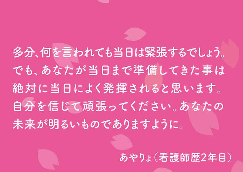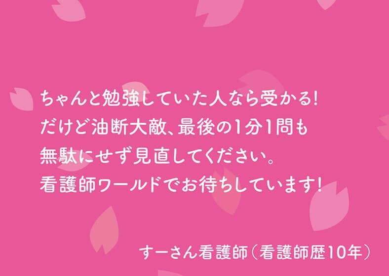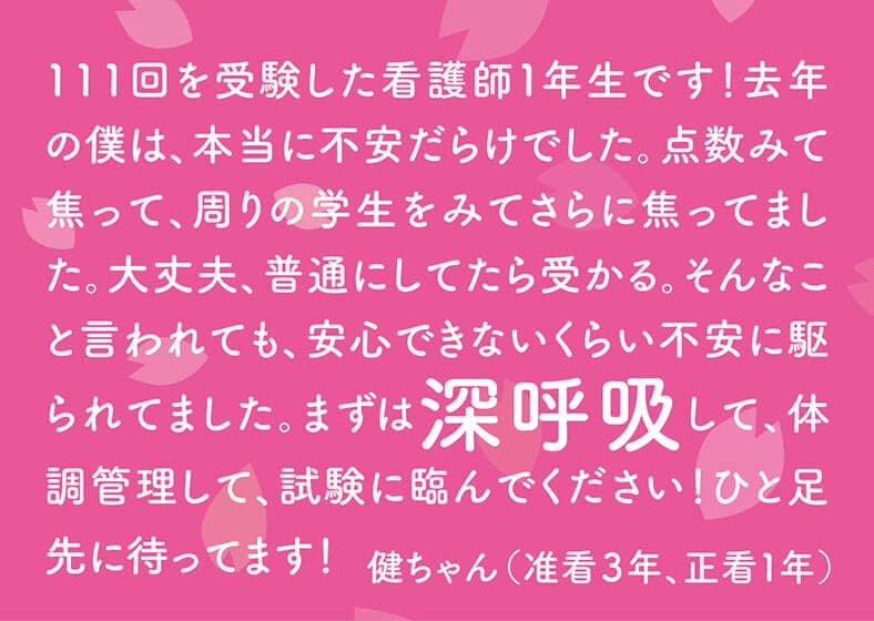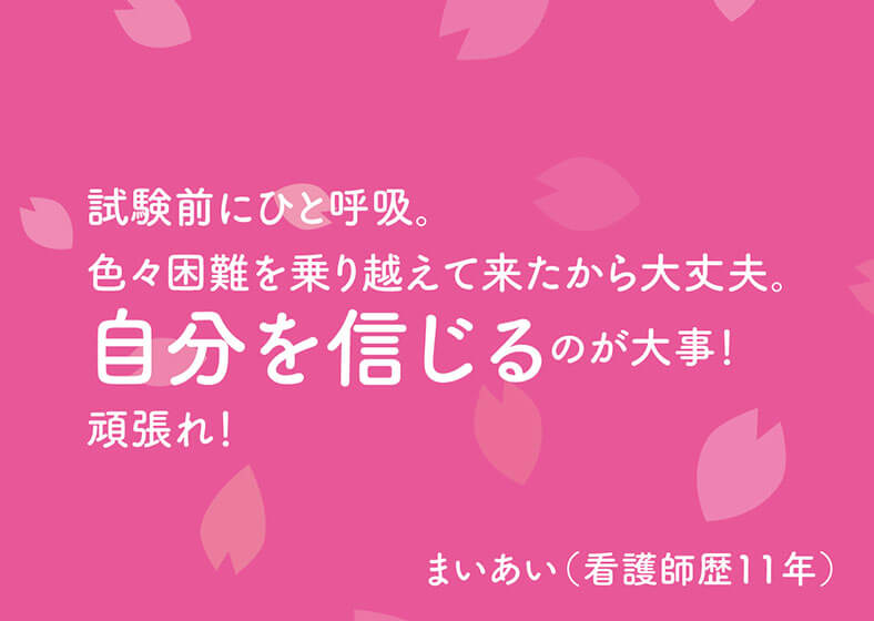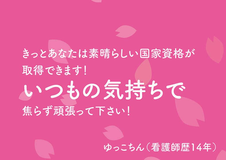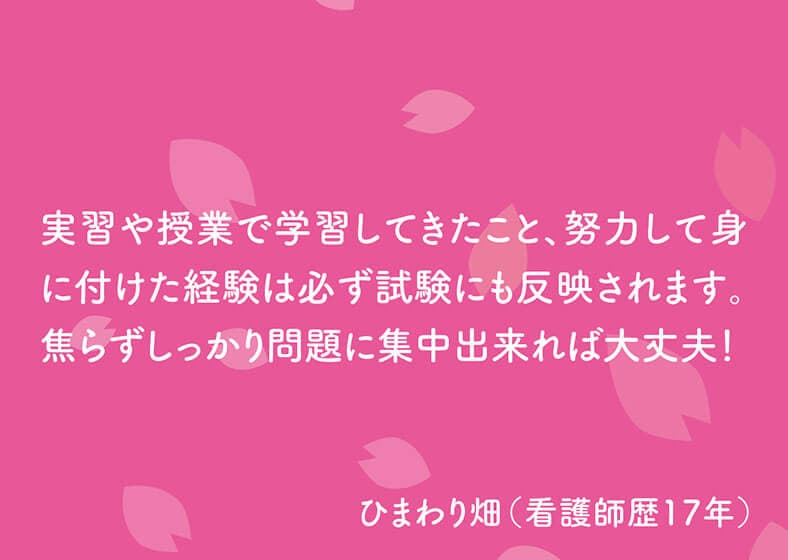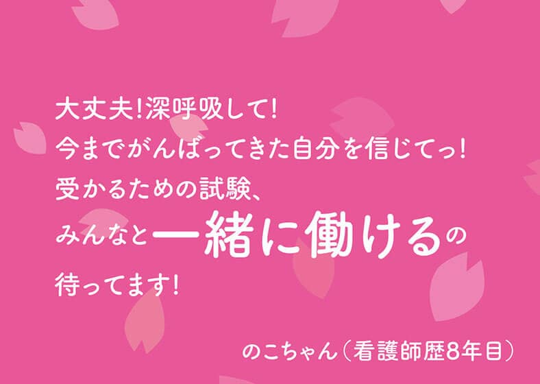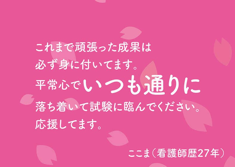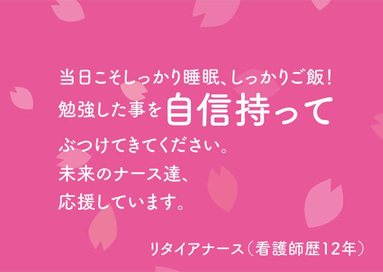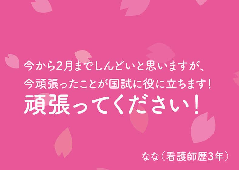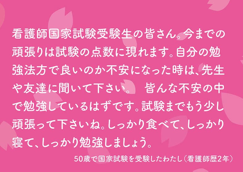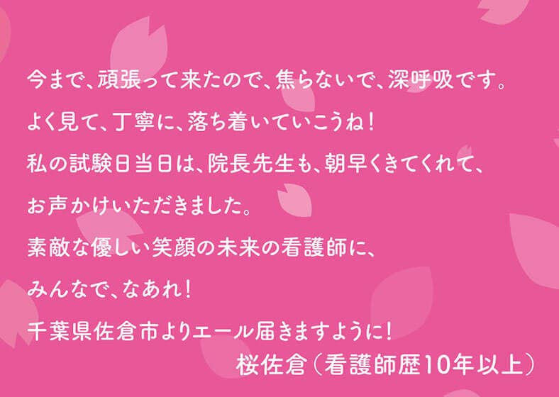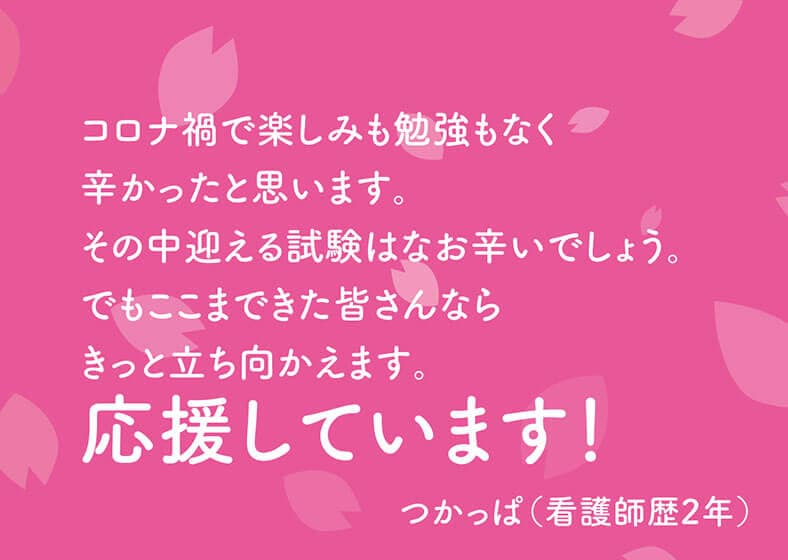 看護師のみなさま、この度は看護師国家試験に挑む受験生たちへの