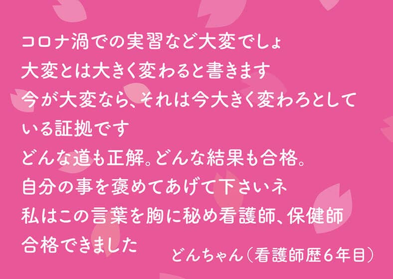 看護師の夢を叶えたいと願う受験生たちの心の支えになっていると思います。