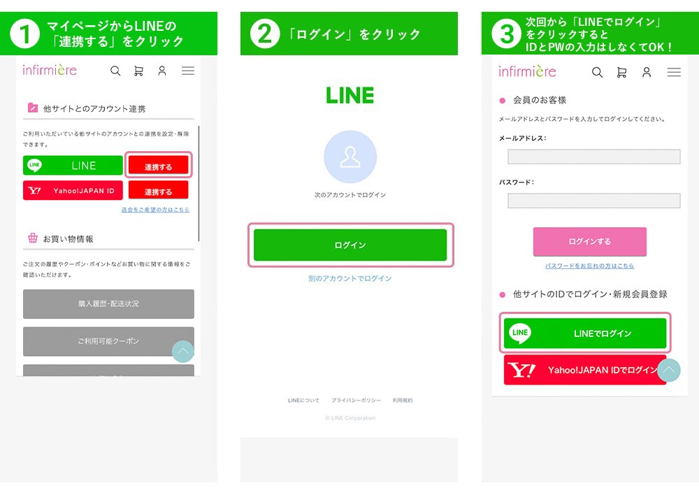 - ※LINE連携すると次回ログイン時にIDとPWの入力不要!!