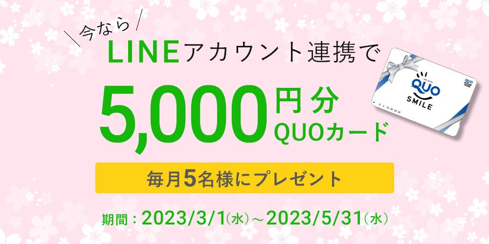 - キャンペーン期間中に、毎月抽選で5名(計15名)様に5,000円分QUOカードをプレゼント