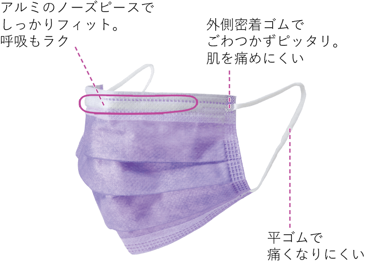 耳も痛くならないし、鼻の針金もよく曲がるので鼻に沿ってちゃんと使用できるため、再度購入してお気に入りです。