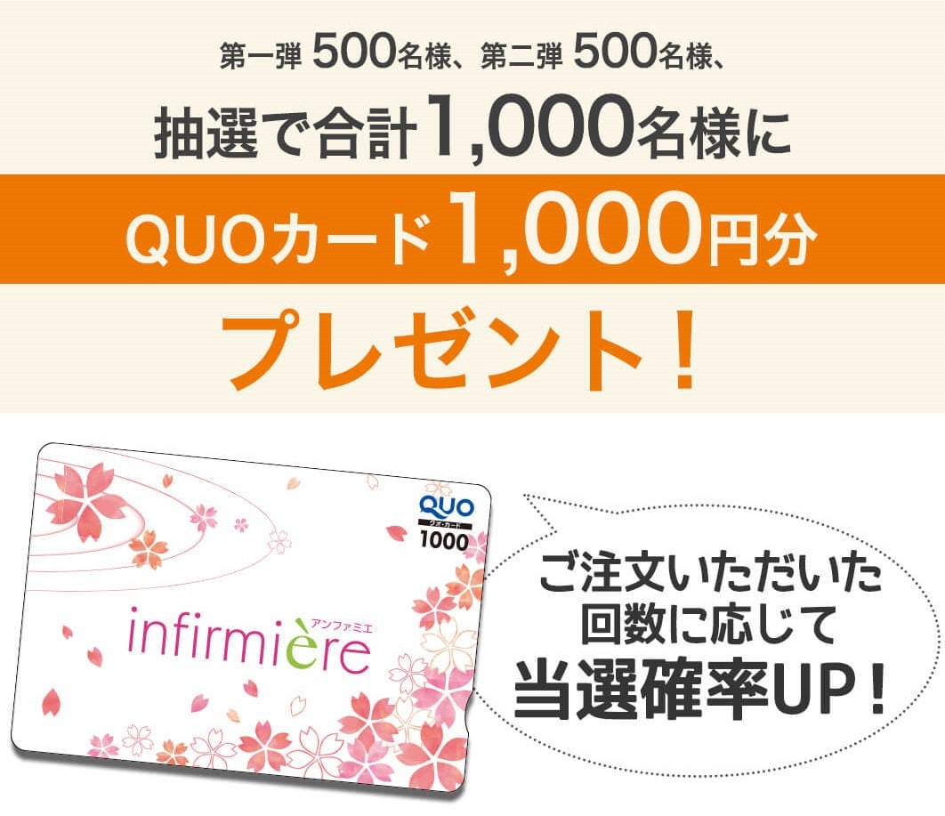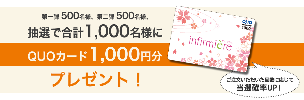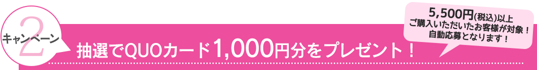 さらに、今回は、購入金額5,500円(税込)以上のお買い上げをいただいたお客様の中で、抽選で、合計1,000名様に、オリジナルQUOカード1,000円分をプレゼントいたします。