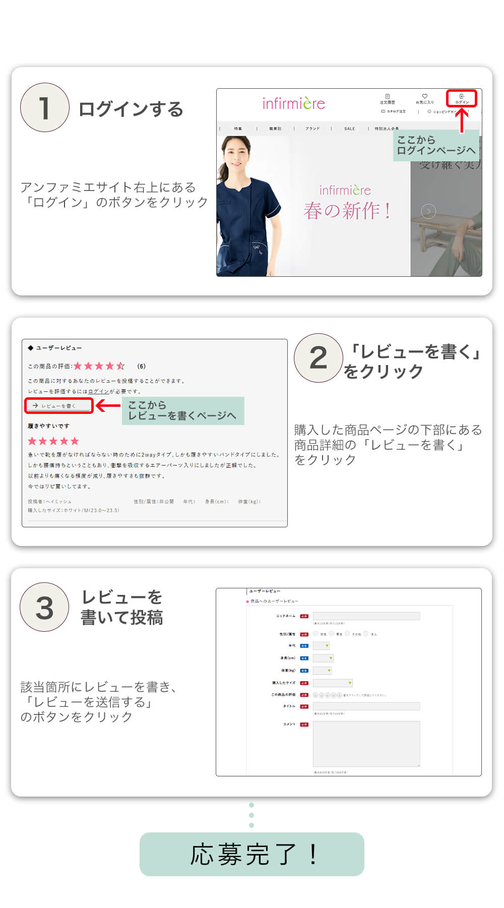 - ・「レビュー投稿キャンペーン」は本サイト「アンファミエオンラインショッピング」上のレビューのみ対象になります。
