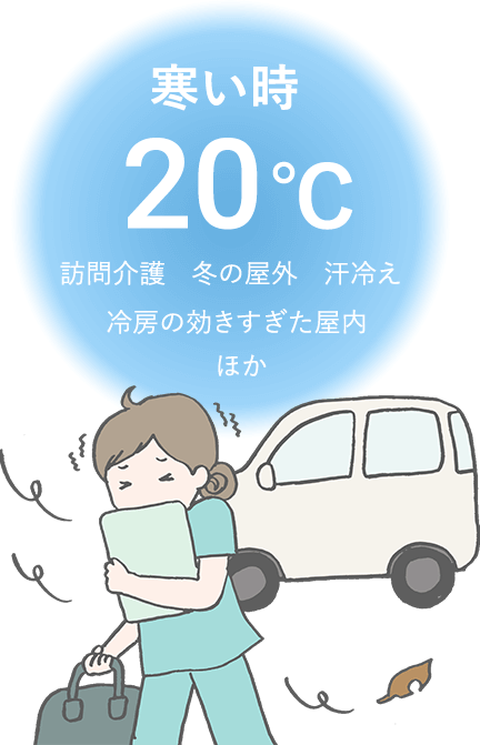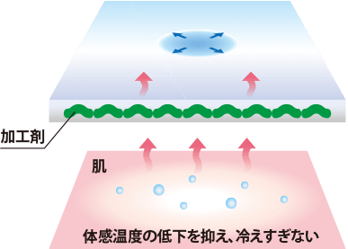 温度が下がると、汗をゆっくり拡散し蒸発を抑え、体感温度が下がりすぎることを防ぎます。