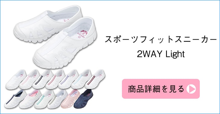 弾むような軽快さと履きやすさで、多くのナースがリピートする“スポーツフィットスニーカー2WAY Light”。
