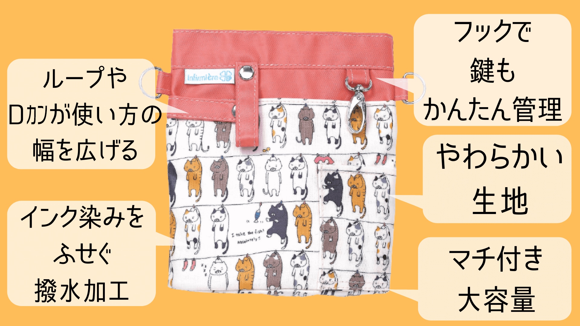 まず、ねこが洗濯されている柄がかわいい!と一目惚れでした。届いてみると白衣のポケットとほぼ同等のサイズなので入るかどうかが心配でしたが、生地がやわらかいので違和感がありませんでした。強いて言えば入れ替えのときに少し丸めて入れる手間があるぐらい。