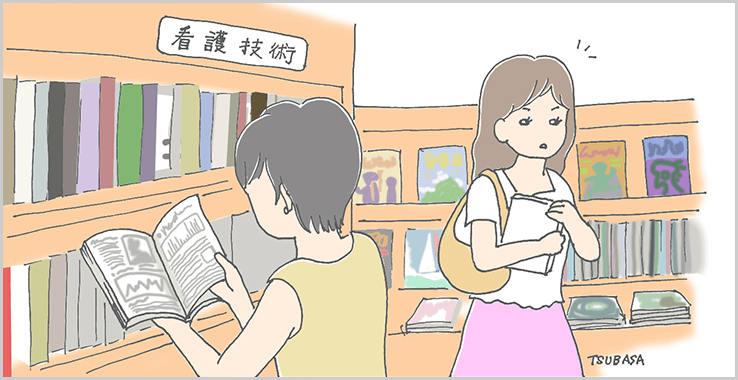 読む時間はなくても看護書籍を買って安心する。また、書店の看護書籍コーナーに立ち寄る人を意識してしまう。