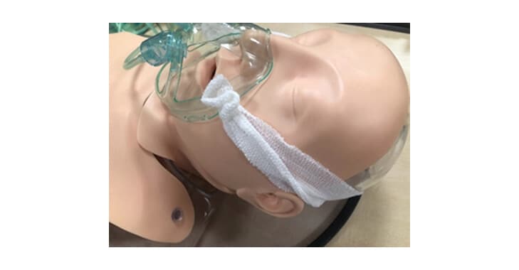 酸素マスクの固定のためのゴム紐は、キツく締めないように注意しましょう。