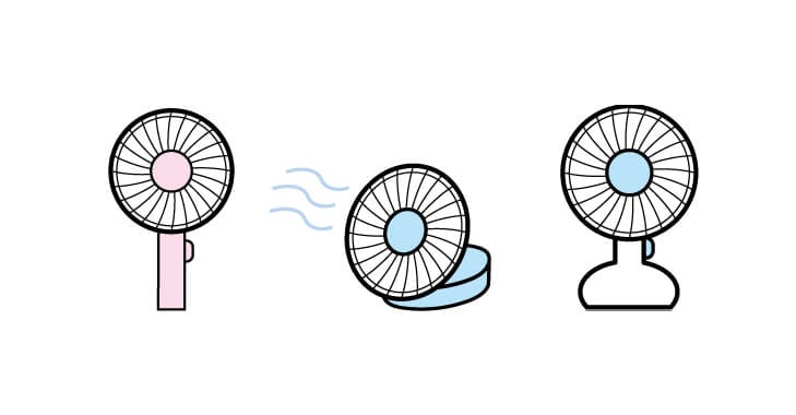 顔への心地よい送風が呼吸困難を改善することも明らかとなっており2)、うちわや小型の扇風機を設置するなども看護師が提案できる支援です。私が緩和ケア病棟にいたときは、置き型の首振り可能な扇風機を使用していました。最近はクリップ式の小型扇風機もあるため、それらを介護ベッドの足元ボードなどに設置することも良い方法です。