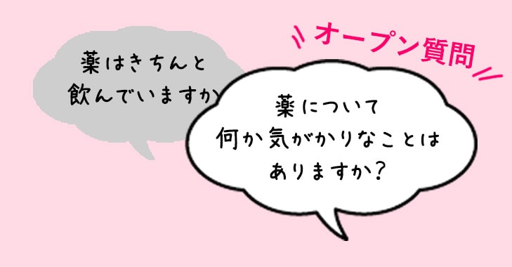 患者さんの思いを傾聴し、承認することができたら、次は質問です。コーチングの中でも一番難しいのが質問技法です。ここでは3つの質問法を説明します。