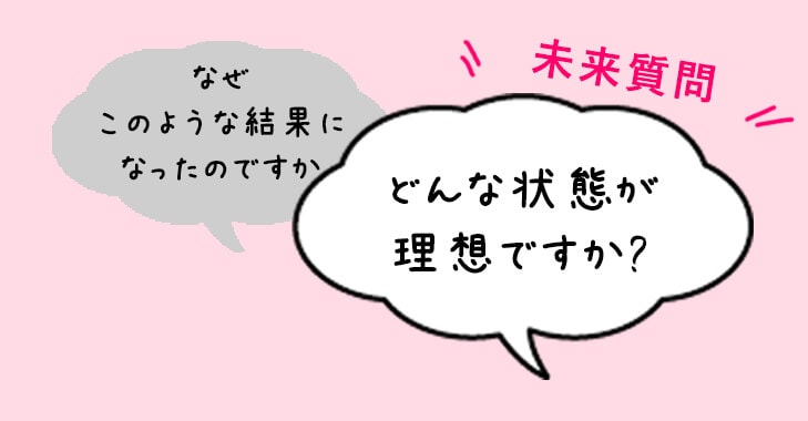 過去のことを、とがめるような質問(過去質問)ではなく、未来に向けて考える質問法です。