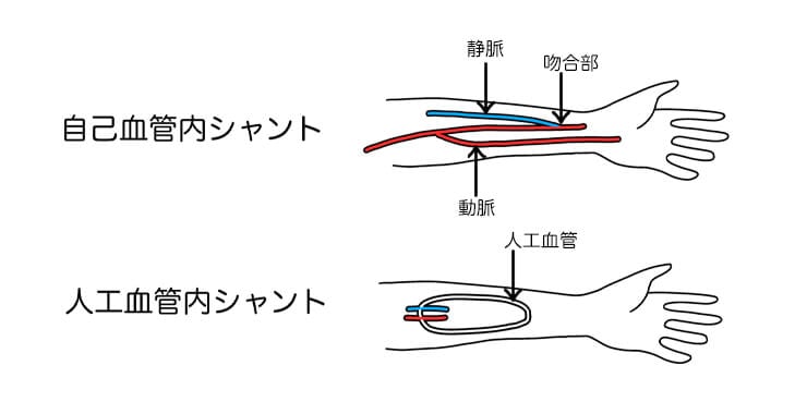1. 内シャントの種類(自己血管内シャント・人工血管内シャント)