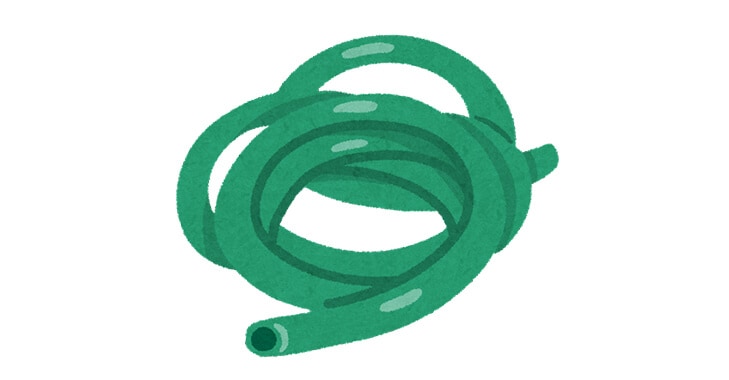 酸素吸入をしている患者さんは、部屋では移動距離に応じた長い酸素チューブを繋いで過ごしています。よく折れ曲がったり、絡まったりするので、看護師は毎日チューブを綺麗にまとめて、酸素投与不足になることを防いでいます。まるで職人のように酸素チューブさばけるようになるため、家でホースや紐をまとめる時にも役立っています。