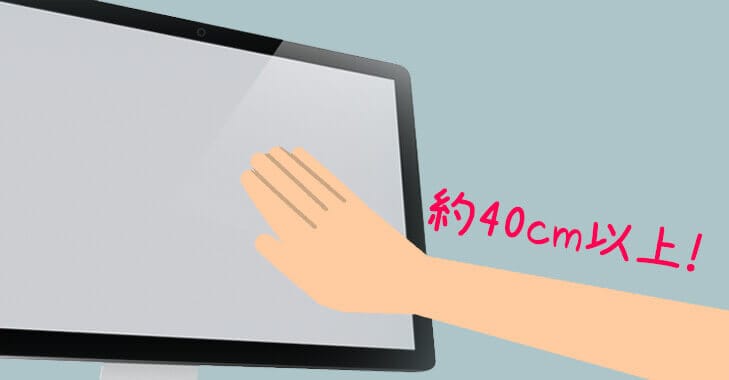 画面と目の距離は約40cm以上(画面まで腕を伸ばしたくらい)とるようにしましょう。