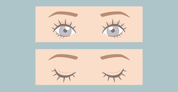 上瞼が動かなくなるため、目を閉じようとすると下瞼が動きます。