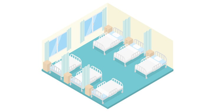 例えば、急性期一般病棟(看護配置7:1)であれば患者7人に対して1名の看護師が対応します。これは1日24時間を8時間の勤務で区切った場合の計算であり、1日3人で7人の患者さんを看護するわけです。50ベッドあれば1日あたり最低の看護師の数は延べ21名、夜勤は16時間で同じ看護師が勤務するとなれば、延べ17名の看護師が対応していることになります。