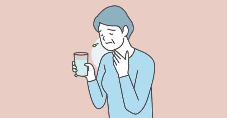 水で飲む場合、たくさんの錠剤などを一気に口に入れていたり、錠剤などをのどに送り込むために顎を上げて飲み込んだりしている人をよくみます。1錠ずつ飲み込む、意識して顎を引いて飲み込むだけでも錠剤などの飲み込みやすさが変わってきます。