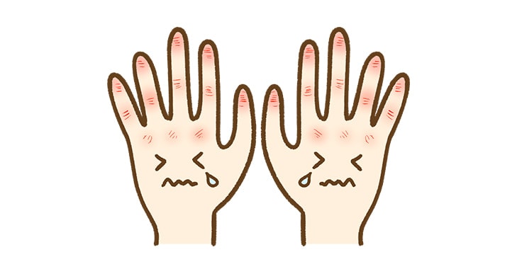 初期症状として、乾燥・赤み・痒みなどがあります。これらの症状が悪化すると、ひび割れ・水疱・湿疹・痛み・腫れなどの症状に移行するのです。