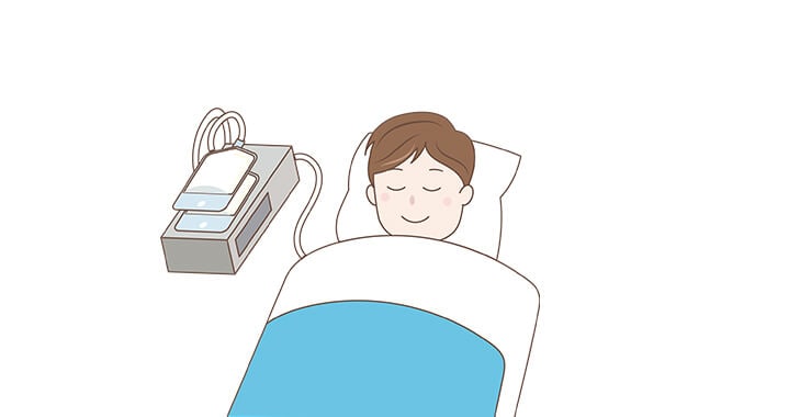 APDとは、機械に接続することで寝ている間に透析が実施されることです。そのため日中は、透析の必要がなく自由に過ごせます。