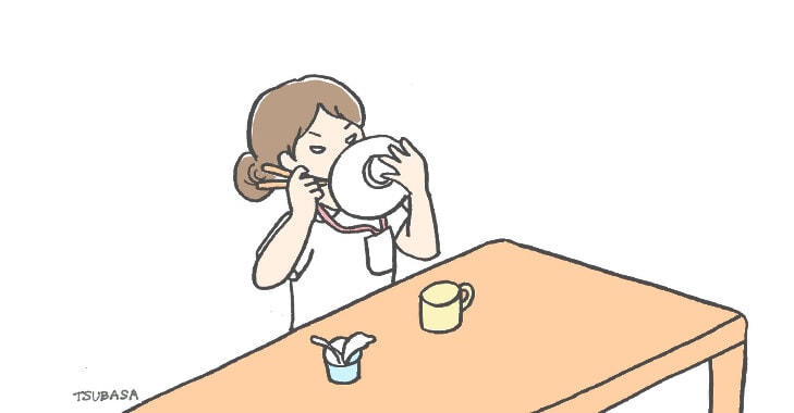 忙しければ忙しいほど、無言でご飯をかきこんでいきます。その姿はもはやフードファイター。