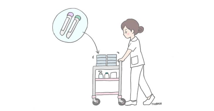 連休明けは検査をする人が多いので、スピッツが大量に並びます。順調に採血が終わると、その後のラウンドも効率よく回れそうな気がします。