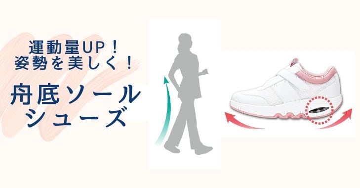 1.運動量アップ&美姿勢のW効果「舟底ソールシューズ」