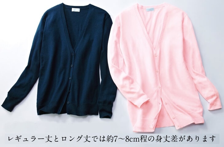 ナースカーディガンが一般のカーディガンと違うところは、ユニフォームとして白衣に合わせやすい色があることはもちろんですが、意外と知られていないのが専用のサイズ設定です。