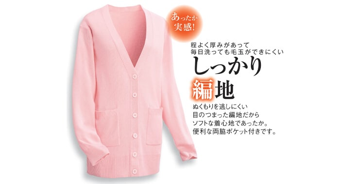 >上質やわらかタッチ吸湿発熱ウォッシャブルカーディガン(SolistHeat)