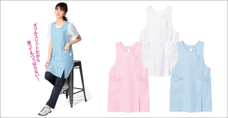 かがんだり座ったり、動きが多い現場のナースさんは、動きやすさを叶えたスリット入りのエプロンをチェックしましょう!