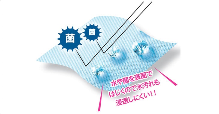 水や菌を表面ではじく、撥水抗菌生地を使用しているので、水汚れも浸透しにくいエプロンです。