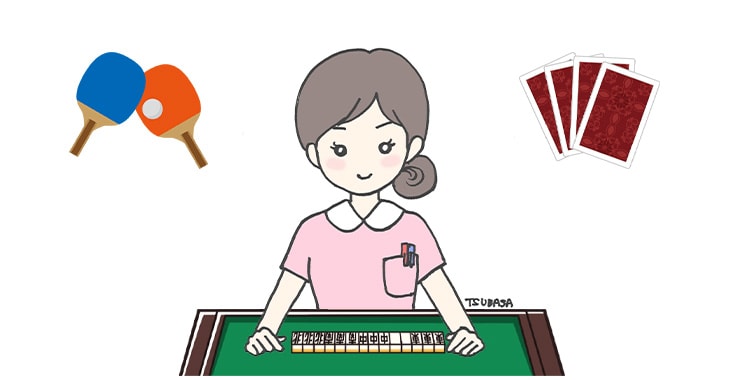 精神科ではレクリエーション活動が充実。卓球やカラオケ、雀卓など、設備の整っている病棟があります。また、患者さんに教えてもらって麻雀のルールを覚えた看護師はきっと少なくありません。「ロン!」「ウノ!」など、にぎやかな声が病棟に響き渡ります。医療施設によっては、敷地内に陶芸窯があるので幅広い活動を楽しむことができます。