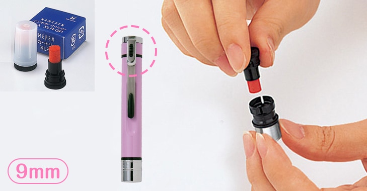 ・補充後、インキが印面に浸透するまで12時間ほど必要です。また、浸透するまで必ず立てておいてください。