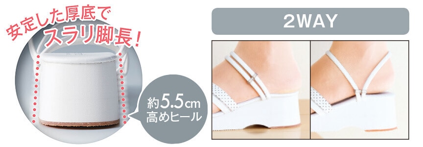 台形型厚底ヒールで安定した脚長に!美脚を叶える2WAYサンダル