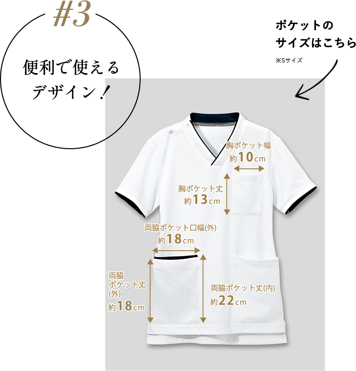 ペンや名札などを入れる左胸ポケット。