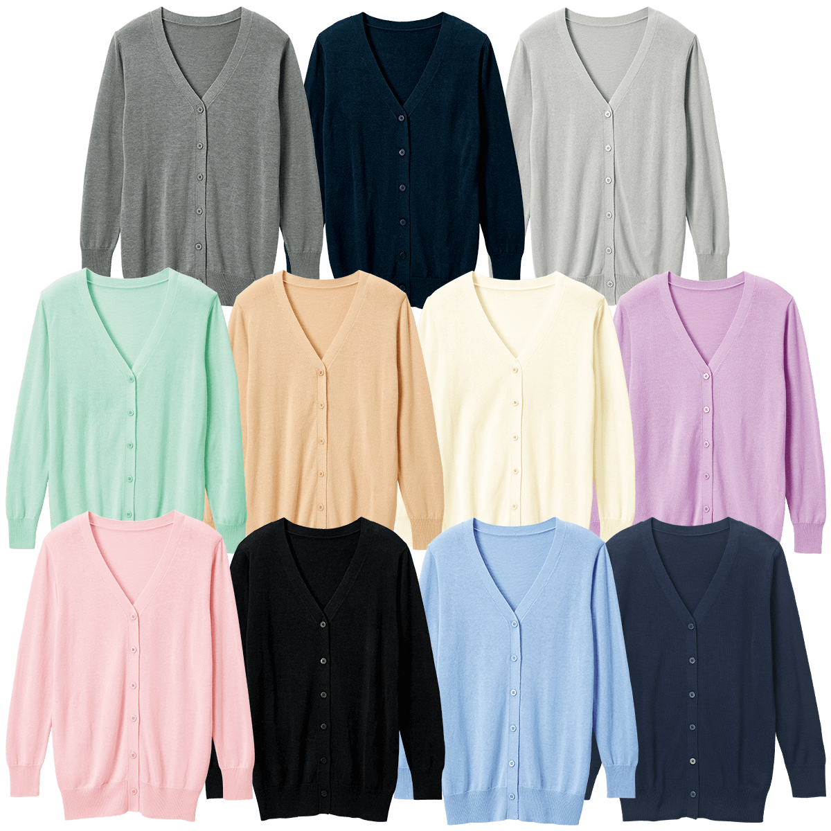 「自宅で洗える」なめらかコットンブレンドVネックカーディガン