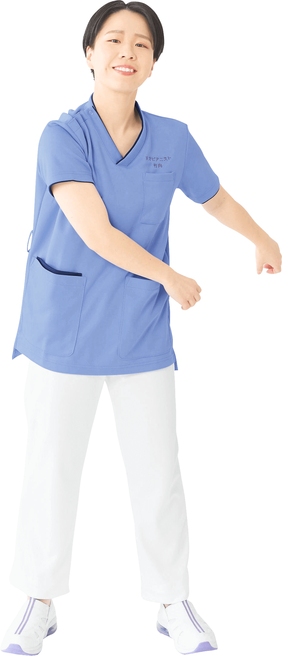これは生地が柔らかくてすんなりと腕が上がったわ~