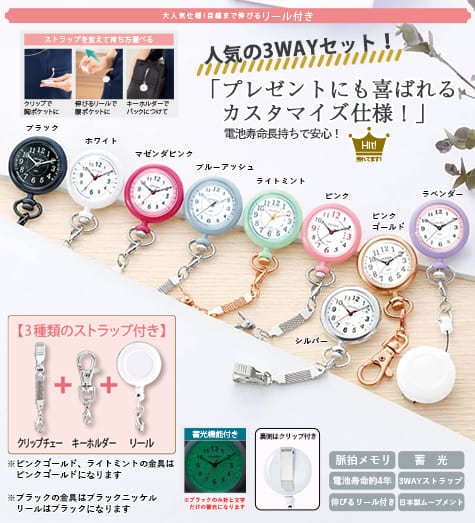 大きめフェイス電池長持ちフック式ガーリーナースウォッチ