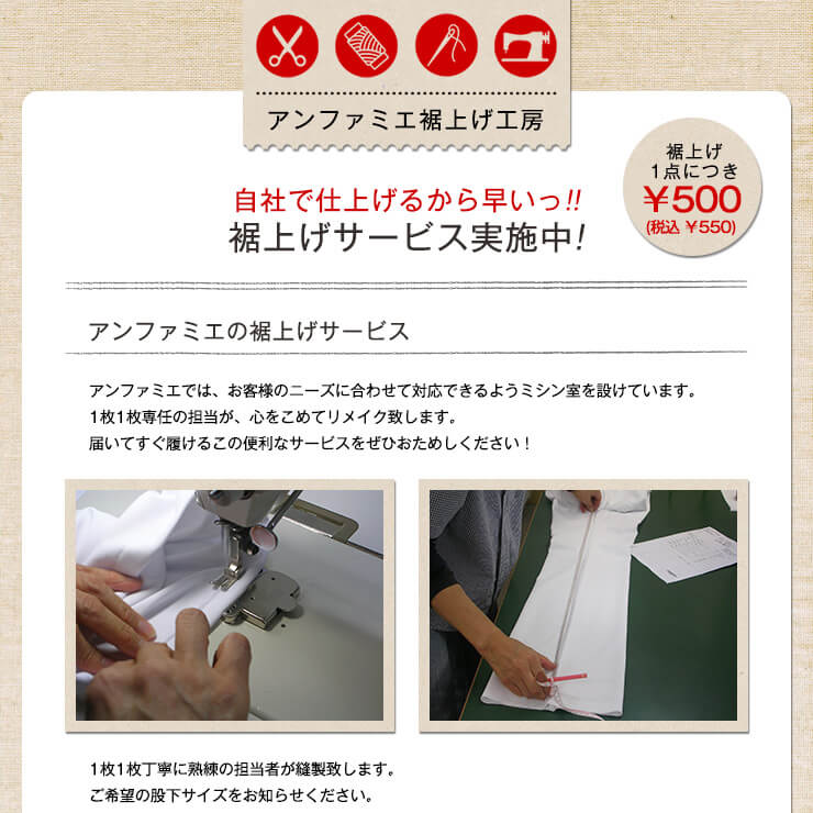 アンファミエでは、お客様のニーズに合わせて対応できるようミシン室を設けています。