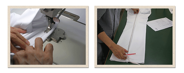 1枚1枚丁寧に熟練の担当者が縫製致します。