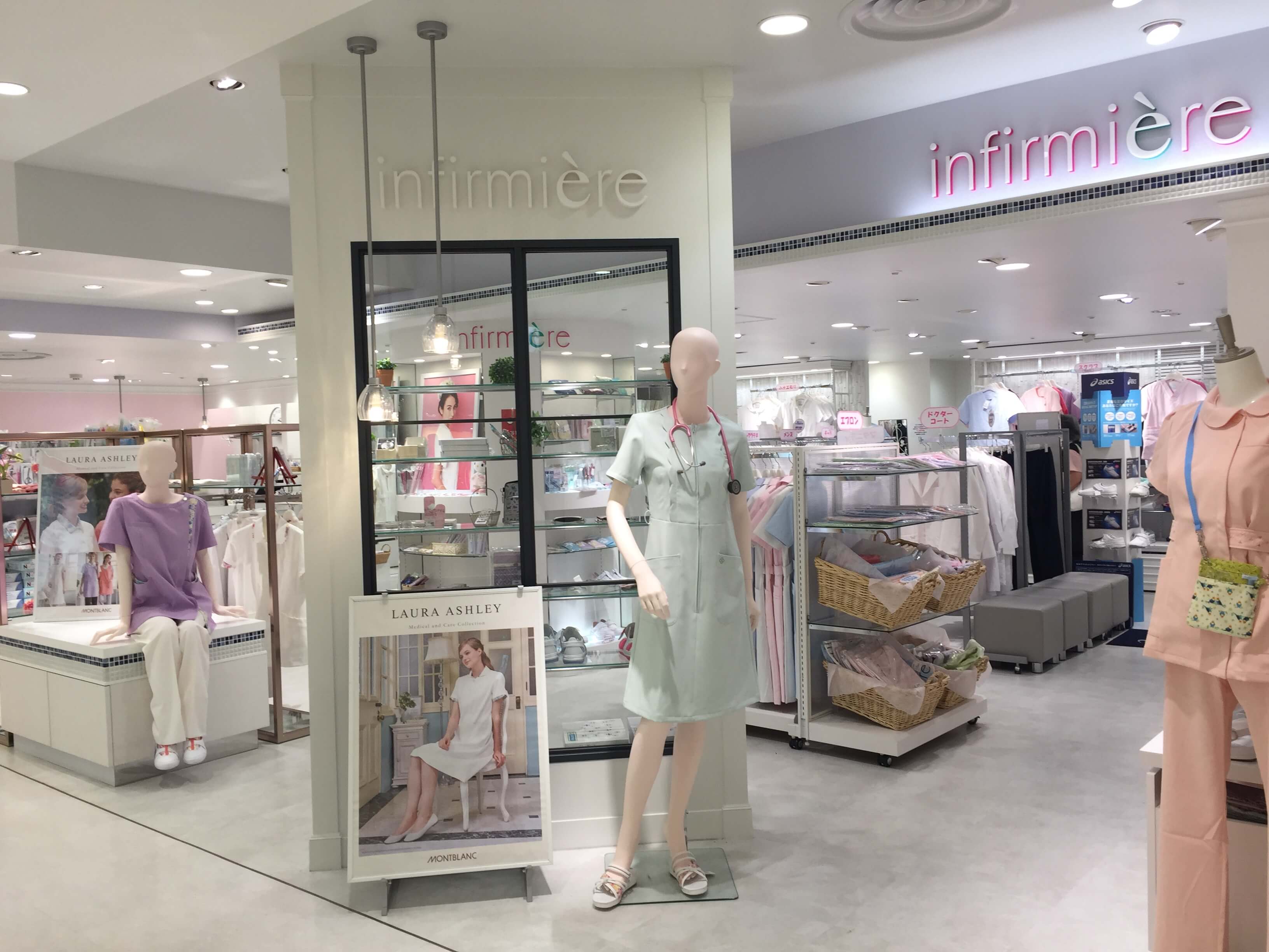 看護師さん必須のアイテムを多数取り揃える。お仕事の前後はもちろん、買い物ついでに立ち寄れるアクセスのよさも便利。