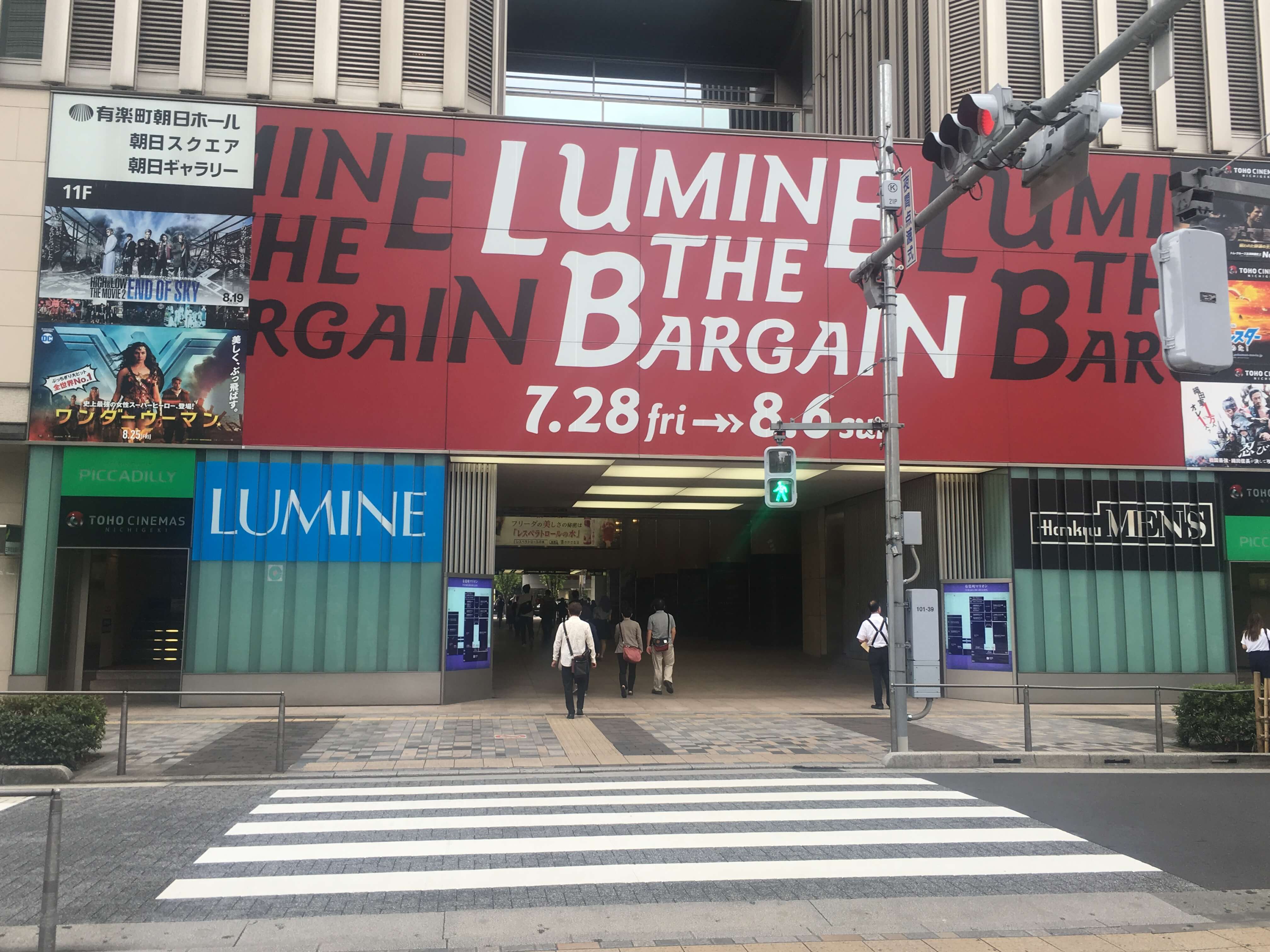 ③有楽町イトシアの右の道をまっすぐ進んでいただくと、横断歩道の先にルミネ有楽町が入った有楽町マリオンが見えます。