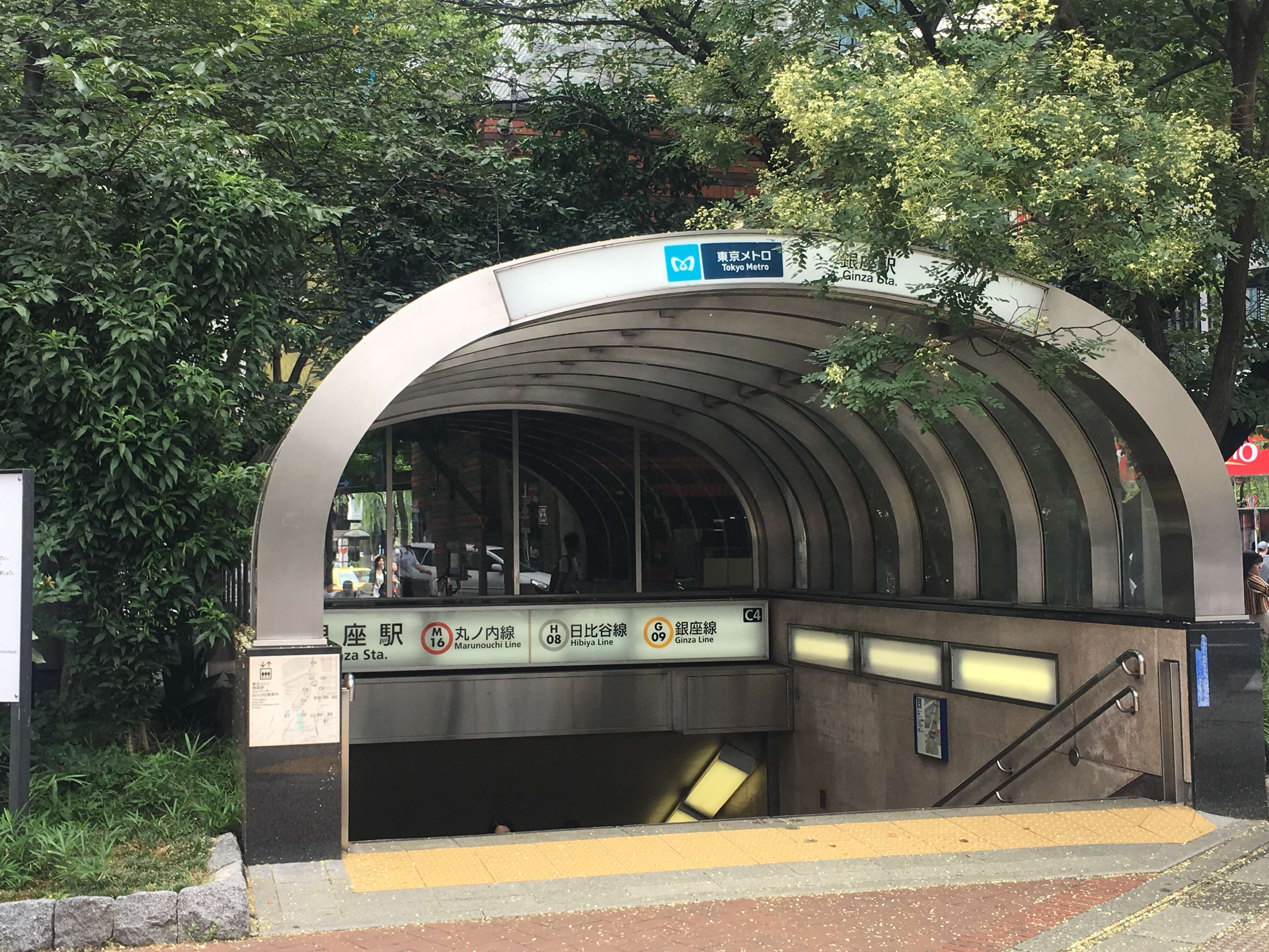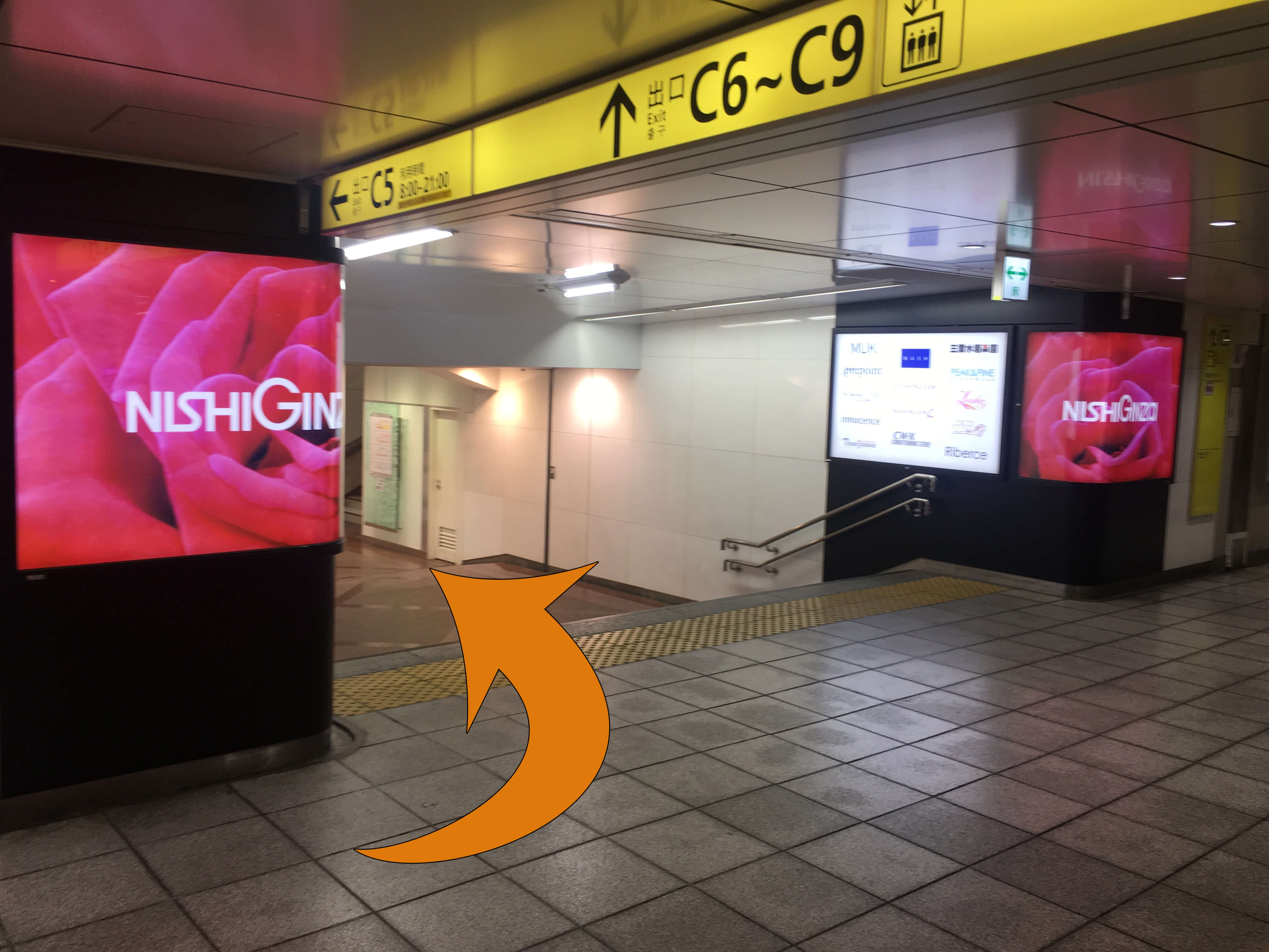①東京メトロ銀座駅C4出口へ降りる階段を降りていただき