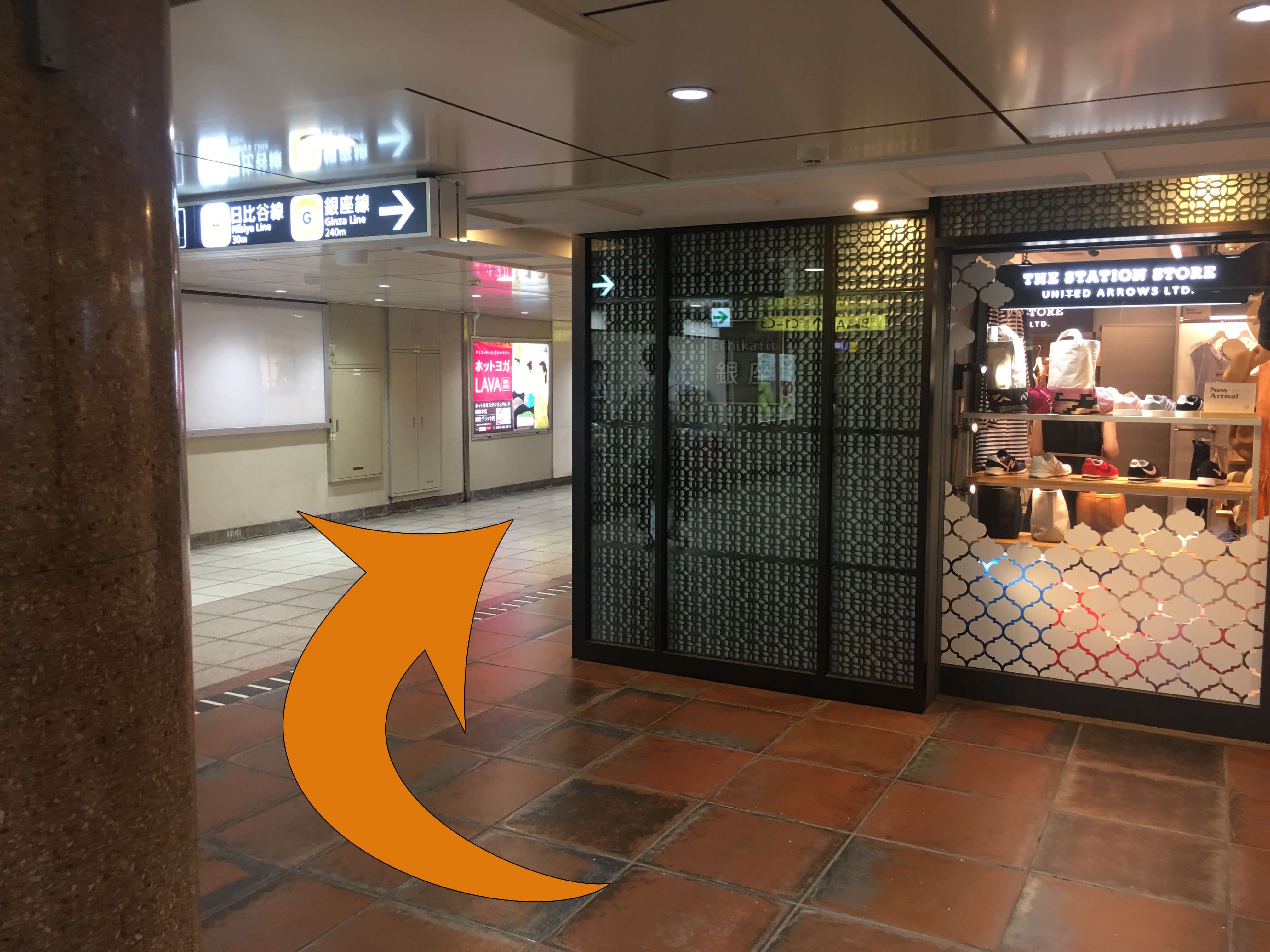 ※銀座口に出た場合は改札を出て左手に進んでください。